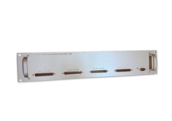 8 independent channels per module, with complete electrode switching capabilities (WE, CE, RE, S, WE2). Modular and stackable system up to 8 units, allowing control of up to 64 channels. Using relay-based switching, it's compatible with various Ivium potentiostats including high-voltage models.
