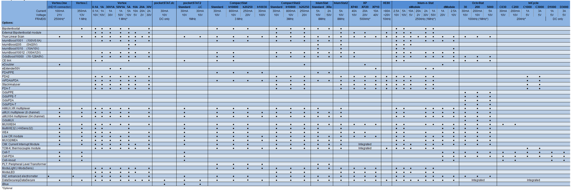 Compatibility Overview of IVIUM Instruments